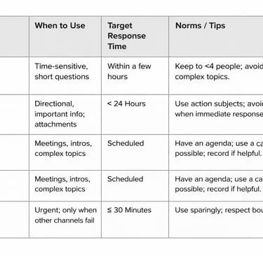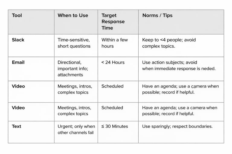 To solve this, we didn't just argue about apps; we created a Communication Agreement. We looked at every tool we use and asked the question: "Do we agree as a company on how this is used?"